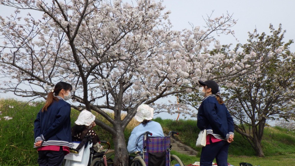 4月初旬にリハビリテーションの一環としてリハスタッフ同行で春日川土手沿いへ桜の花見に行きました。桜は満開で2日目・3日目は雨の影響で少し肌寒い気候でしたが、春の訪れを感じながら穏やかな時間を過ごすことが出来ました。